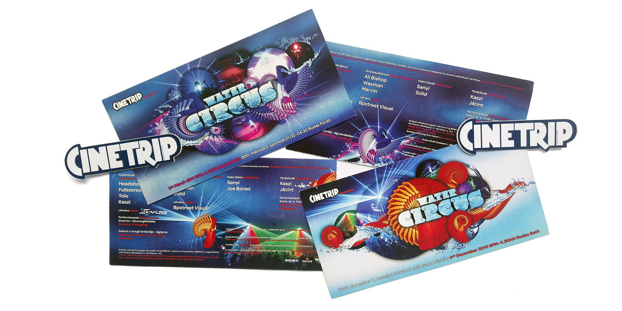 Flyer and Poster Graphic Designs for Cinetrip Bath Party.